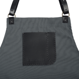 Durable and long lasting, this custom apron by Bramby Supply is the perfect fit for the busy barista. Completely produced out of a innovative material that is made out of recycled plastic bottles. With black leather pockets and strap that are durable and striking.